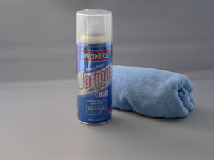 使用方法はすごく簡単、濡れたボディのままスプレーして付属のファイバークロスでのばすように塗り込むだけです。砂とかが浮いていなければ、汚れ落としも出来ますから、雨の日でもさっと一拭きでコーティングが出来上がります。 この一本で解決です! |