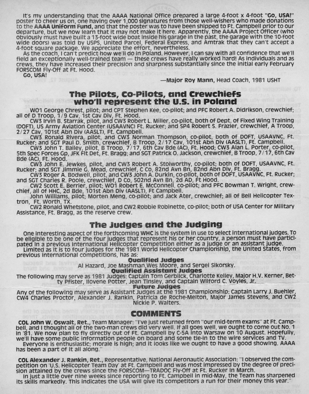 A correction: CWOs Whetstone and Robinette were from D Company, 502nd Aviation Battalion, 2nd Armored Division, Fort Hood, Texas