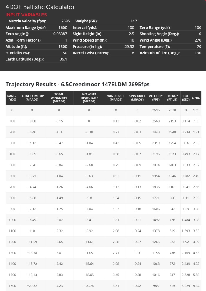 standard day (59 degrees, sea level, 29.92, 50% humidity) Hornady 6.5 Creedmoor