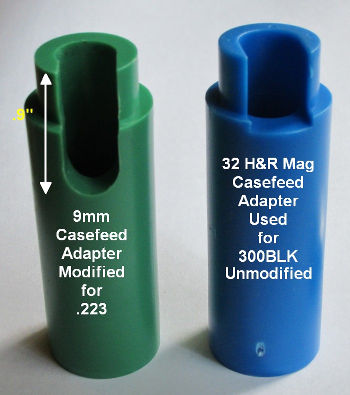Left - 9mm Casefeed Adapter Modified to Work With .223 Brass