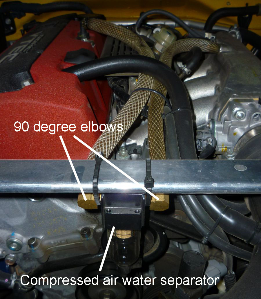 (too small, see Update 3 below) compressed air water separator (air tool section of the store), two 90 degree