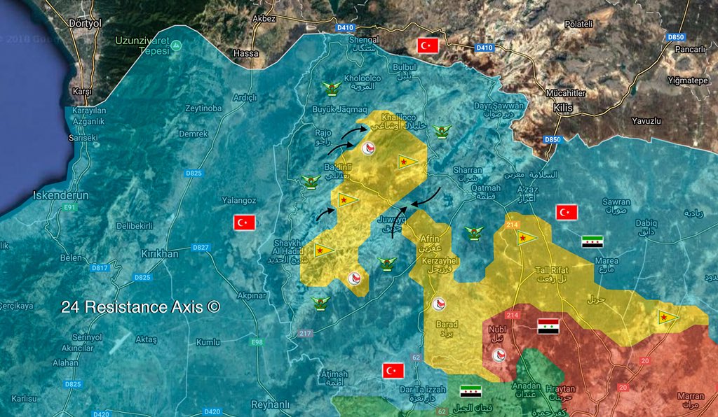 On March 15 and March 16, the Turkish Armed Forces and the Free Syrian Army captured over 20 villages from the Kurdish People’s Protection Units in the area of Afrin. The TAF and the FSA are working to capture the remaining YPG-held area north and northeast of the city. However, the southern road out of Afrin remains open.