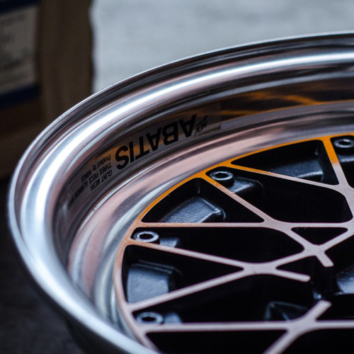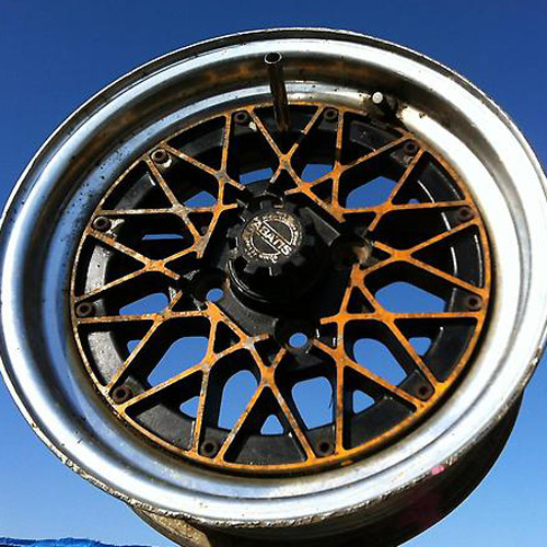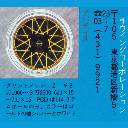The Glint Mesh Z was a limited edition version of the Abatis Glint Mesh, featuring an orange mesh face versus the basic models polished face. The Mesh Z came in 15″ diameter only. While the Z finish appears to have been applied to early productions of the wheel, the Mesh Z was released in 1984.