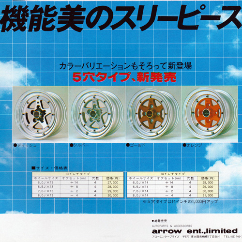 Sharing shell sections, colours and available sizes with the Arrow Three-Piece 4H, the 5H wheel traded a spoke for a mounting hole. Like the 4H, the wheel face shows a large recessed rectangle carrying JWL lettering.