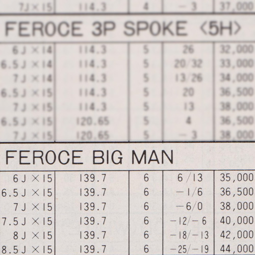 A Feroce wheel for trucks! A FF version was offered with a more limited production run.  It used a high offset and 4H PCD, but the original Big Man was available with 6H PCD139.7 only.  Colours were blue, red, black and silver.