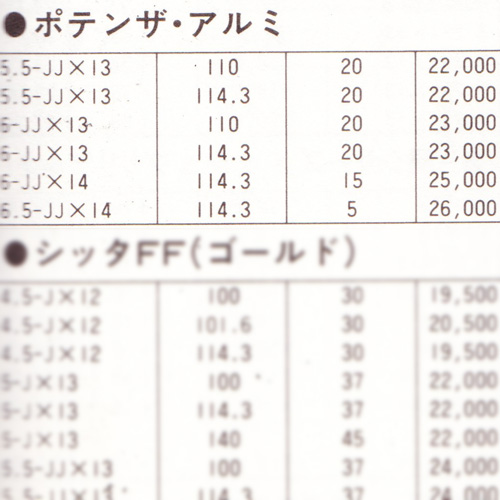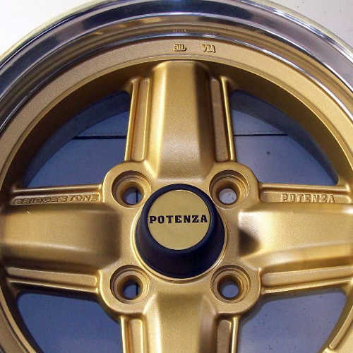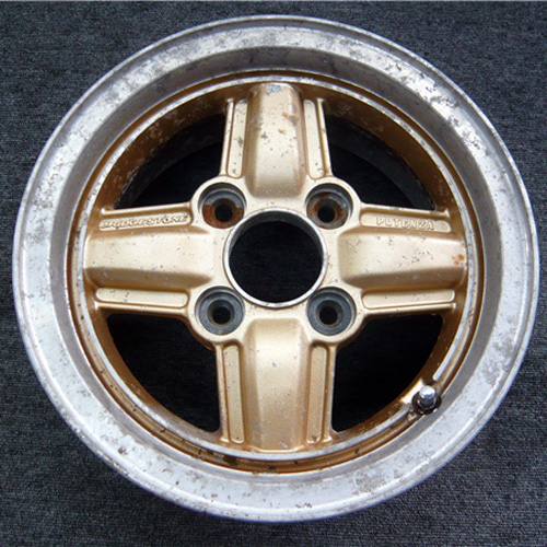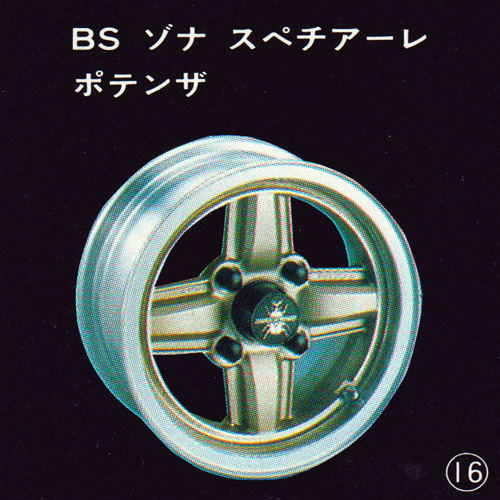 This simple four-spoke was released in 1979 as the Zona Special Potenza in 13 and 14 inch diameters. With cast construction, 14 6J wheels weighed in at 6.0kg. Gold was the only colour offered. In 1981, when the Zona line up was revamped, the wheel lost the beetle on its centre cap, and was simply renamed to Potenza Arumi (aluminum). With a max size of 14 6.5J +5, the wheel is often overlooked by enthusiasts today but at one point in history was a very popular option.