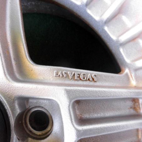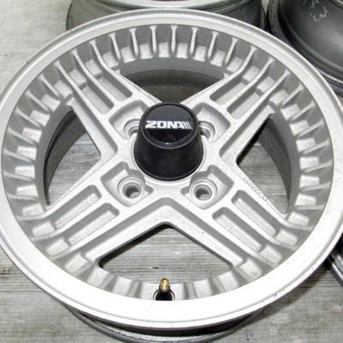 This Bridgestone Zona wheel carries the name of the City of Lights, and with an intricate many ribbed casting on the face, and extreme simplicity behind, this wheel might be a good metaphor for Las Vegas as well. This is an extremely rare wheel that we don’t have great documentation on. It appears in catalogs in 1982 and 1983 only, as the Zona Vegas (despite have “Las Vegas” cast into the face). We have never seen actual Bridgestone literature that features the wheel.