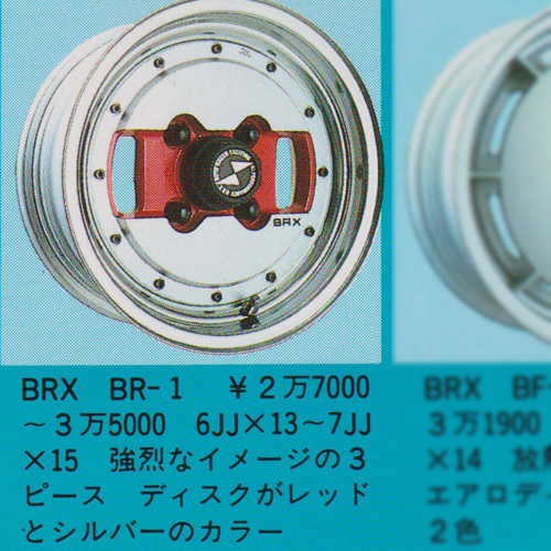 One of Yokohama’s lesser known wheel brands, BRX was an acronym for Boy Racer Exciting, and the BR-1 launched the brand with a racy single spoke style, similar to that found on the Dome Zero. This wheel shared construction with the Advan A3 line-up, but offered more aggressive sizing (up to 14 8J).