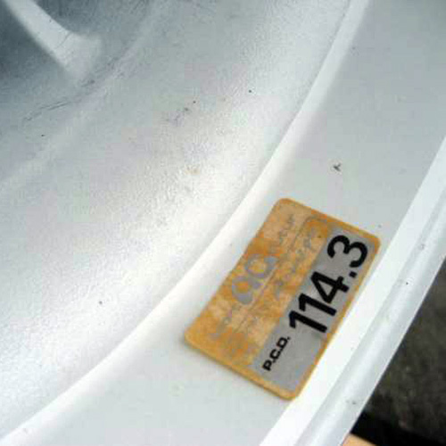 Simple but brilliant, the ACB is a dish design that proudly displays the designers initials in big letters that span the face of the wheel. Details of the design make the wheel exciting. A three striped centre cap is coloured to match the lettering on the face. Multi-colour lug nuts also fentire the AC logo and are matched to the letter on the face that they sit inside of. The painted finish of the wheels though, is often strangely poor, showing brush strokes in both coloured and white areas, suggesting that the wheels were perhaps hand painted.