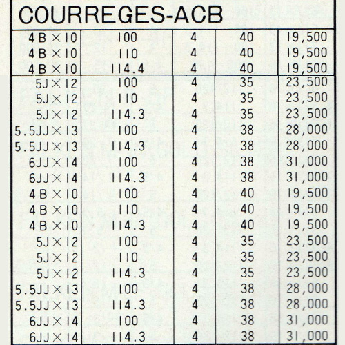 Produced by Yamaco Industries under guidance from French designer Andre Courrèges, the Courrèges line of wheels is one of the most unique and interesting groups of kyusha wheels out there. The ACB is the most well-known, and common of the group. Even still it is ultra-rare at best.