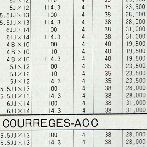 Produced by Yamaco Industries under guidance from French designer Andre Courrèges, the Courrèges line of wheels is one of the most unusual and interesting groups of kyusha wheels out there. The ACC is one of the rarest members of the group with a production that ended in earlier than the ACB in 1985.