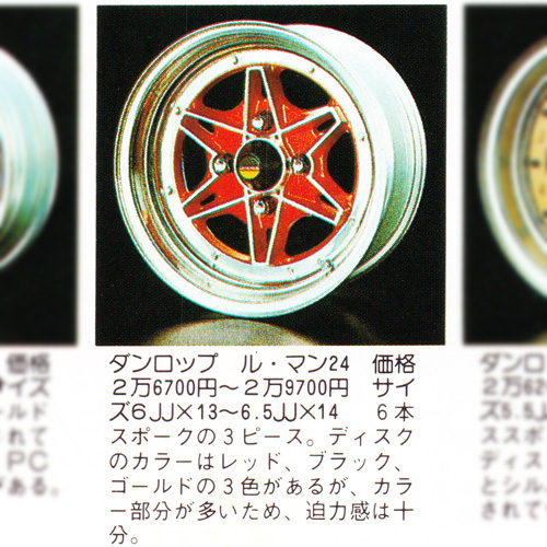 Unlike most other modular Dunlop wheels, the Lemans 24 used a sandwich mounted centre section. Eight assembly bolts were used, but the wheels were also welded together.