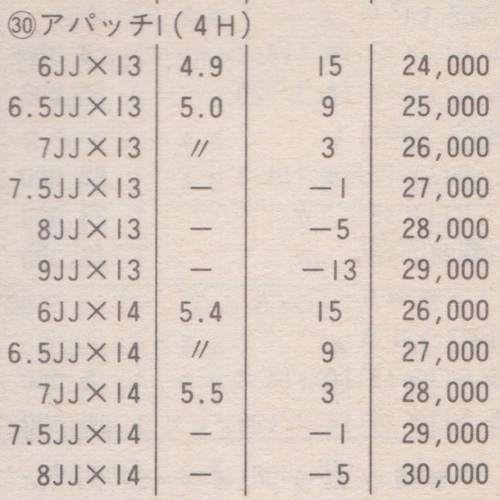 Aside from centre caps, the Apache I, is fairly void of detail. Sizes ran up to 8J though, and weights were quite competitive with 14 6J sizes being under 5.5kg. It is not widely loved however, perhaps due to it’s somewhat ungainly appearance, and often sells for quite reasonable prices relative to comparable wheels.