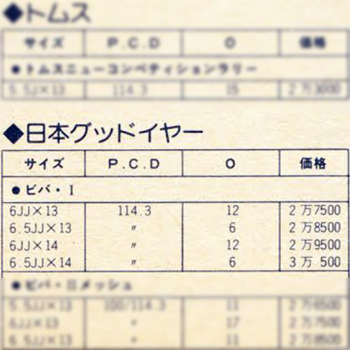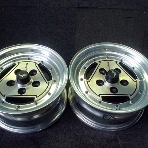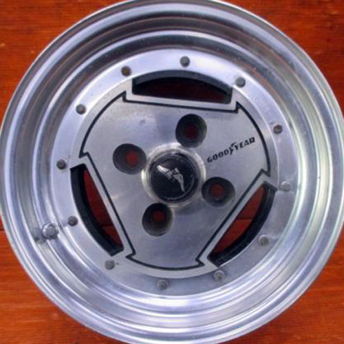 With a simple three spoke centre, and tall stepped lip, The Viva I is probably the most attractive wheel from Japan Goodyear. Thirteen and fourteen inch diameters only, with mild to middle widths. 5H PCD’s available in 14″ only. This is an extremely rare wheel, but doesn’t generally command high prices because of its name.