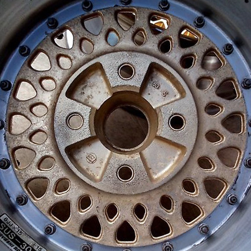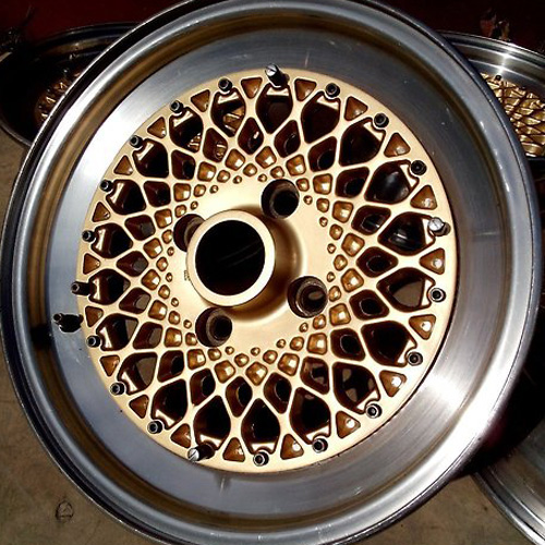 Diameters were fifteen inch only, and in alignment with the coloured aero disk, the mesh pattern was available in either silver or gold.  Widths went from 6J to 8J.  As far as we can tell this wheel was only in 1984 catalogs.  It is ultra-rare today.
