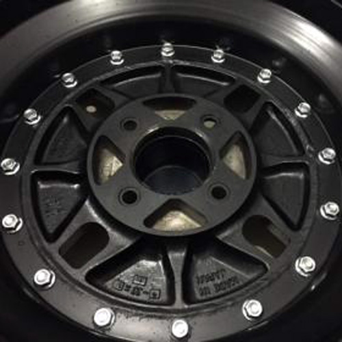 From what we can tell, 15 and 16″ diameters used the same centre sections, making up the difference in diameter with a taller shell section. The wheels use a front mounted centre, and a bead of weld on the back of the face gives extra support to the 16 assembly bolts.