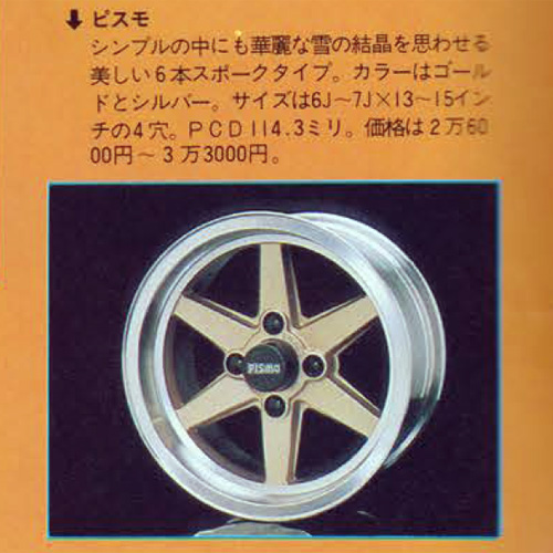 A simple, attractive 6-spoke wheel, the Leonard Pismo came in diameters 13 to 15 inch with relatively mild sizing. The biggest option, 15 7J weighs in at a sturdy 6.5kg. Four hole PCD114.3 only.