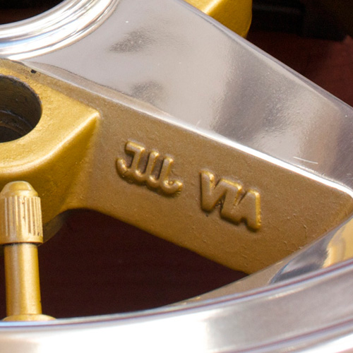 The River Side Leo strongly resembles the original Equip, but the details on the Leo clearly distinguish it from Work’s product. ”Leo” is clearly cast onto the side of one of the spokes. VIA and JWL markings are seen in a similar place.