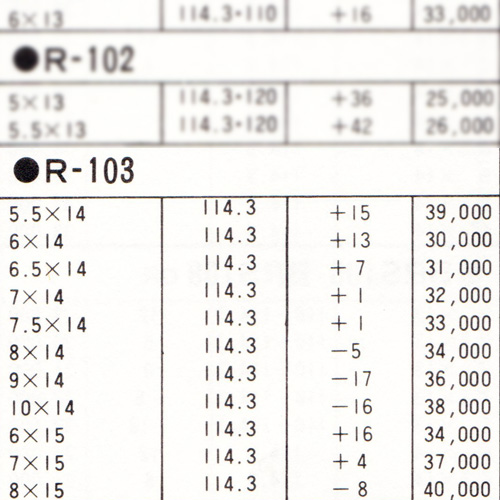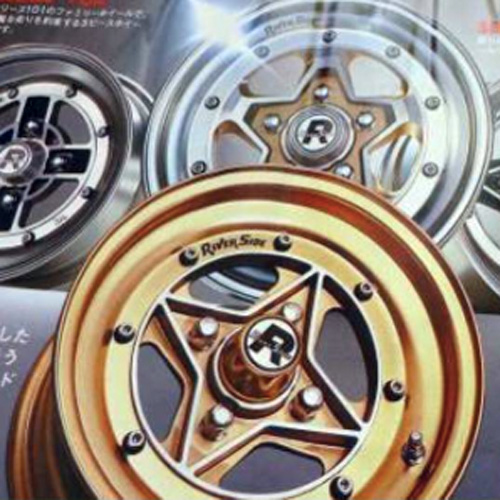This five hole River Side shared shell section with other R series wheels, but was not given any 13 inch options. With a more substantial centre disk, weight is a little higher than other models. 14 6J size comes in at 5.0kg – Still far better than the average for the time. Black and gold were standard colours.