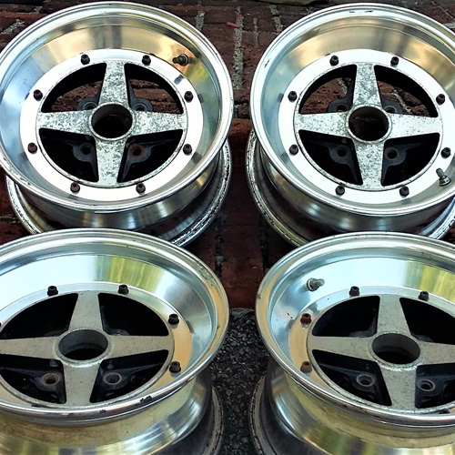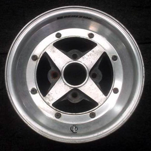A cross-type four spoke that could easily be confused for a Work Equip. The Rola Turbo came from Rola Original Inc, and is identified easily by a sharp edge/drop on either side of each spoke. Neither the brand or the wheel are commonly known.