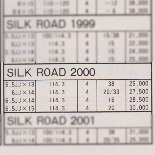 From the once lauded Japanese tuner Silk Road of Nara, in cooperation with Toyo Industrial, the 2000 is the second of three Silk Road models. The 2000 was available in 13 -15 inch diameters, but only fits 4H PCD114.3 cars.