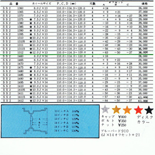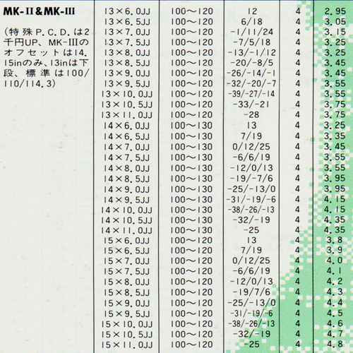 Like many Speed Star wheels, the MK.3. uses a multi piece construction, but is welded together after assembly.  Weights are ultra-low, with 14 6J wheels well below the 5.0kg mark.  Available colours where silver, gold, orange, red and black.