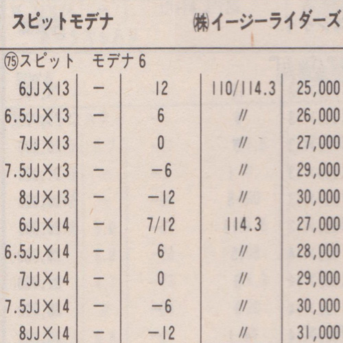 There are some similar wheels out there, including the Rays Gotti/Gotti Type 140 and even the Aster Spit Modena 6. 😮 Note that every Easy Riders Spit Modena wheel uses a sandwiched center section with 12 hex-head (not socket-head cap) assembly bolts and in the centre section has Spit Modena cast in between two bolt holes, and JWL/VIA markings on the opposite side from them.