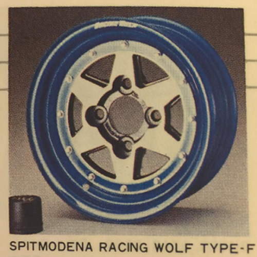 Commonly known simply as the Spit Modena, the wheel was produced by Easy Riders Corp in conjunction with Enkei, who provided the parts. Before the Racing Wolf model name was introduced, the wheel was simply known as the Spit Modena 6 (1979 at least).