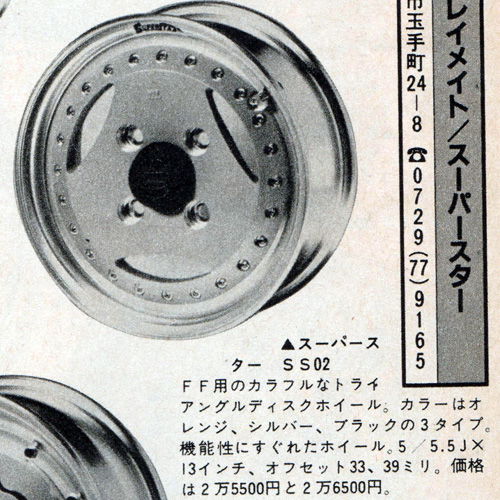 A front-wheel drive specific Super Star. The front mounted faces were available in orange, silver and black colours. Thirteen inch diameter only.