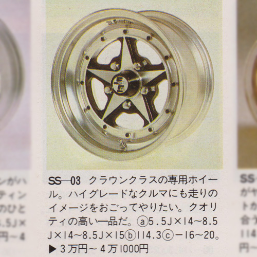 The five hole, and five spoke version of the SS-01 comes it at the exact same weight as the original. (4.9kg for 14 6J) Available colours were black, gold and silver. Like the SS-01, the Super Star SS-03 is not terribly uncommon in used markets today, but remains a highly sought after wheel.