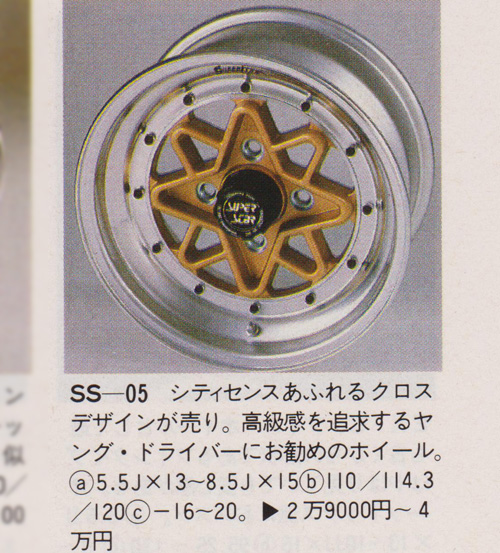 Released in 1981, the SS-05 arrived on the scene at the same time as it’s doppelgänger, the Hayashi Techno Project TRX. Both are sought after wheels today, but the Super Star SS-05 is probably more interesting, with some extreme sizing and unique colours possible.