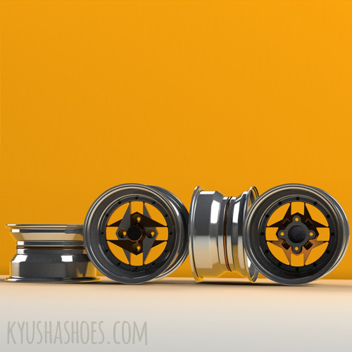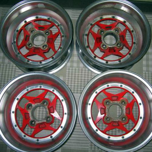Available colours were red, gold and black, contrasted with polished finishes on the spokes. Like the rest of the Super Star SS line-up, some big widths were available. 13 inch diameter went all the way from 5.5J to 9.5J. Fourteens went up to 10J, but 15 inch was limited to 8J.