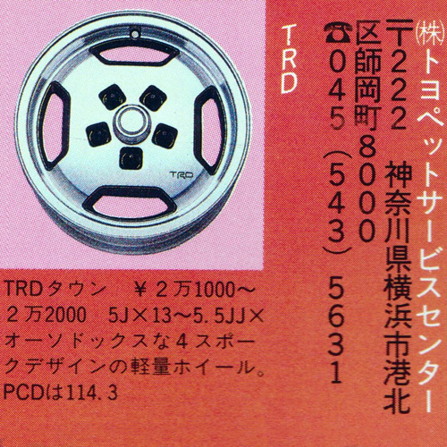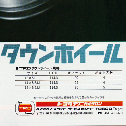 Compared to the Race and Rally modelled TRD wheels from the early eighties, the Town wheel is the most rare, but also probably the least interesting, especially in the very mild sizes offered.