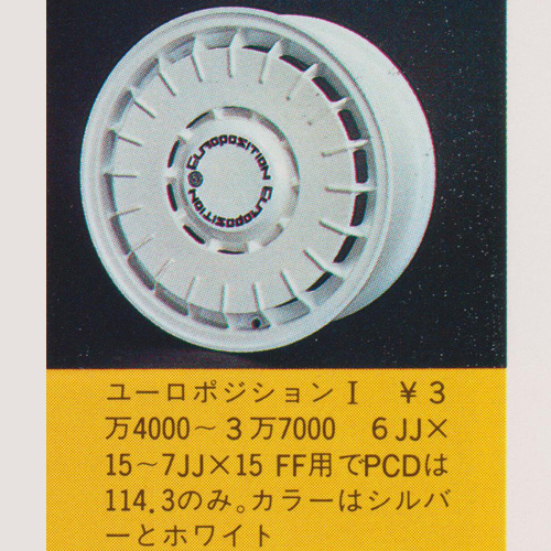 An unobtainable dish type wheel for FWD cars. Silver and white were reportedly available, but we’ve never seen a real life example.