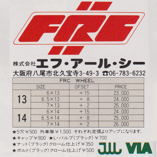 Constructed by Work for FRC, who called the wheel, Adventure Wheel. Who exactly FRC is though, we're not really sure. It appears to have been a tuning shop in a small city south-east of Osaka.