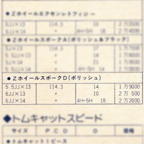 | Nihongo-de Search | スポークD, Z-ホイール, トーヨー |