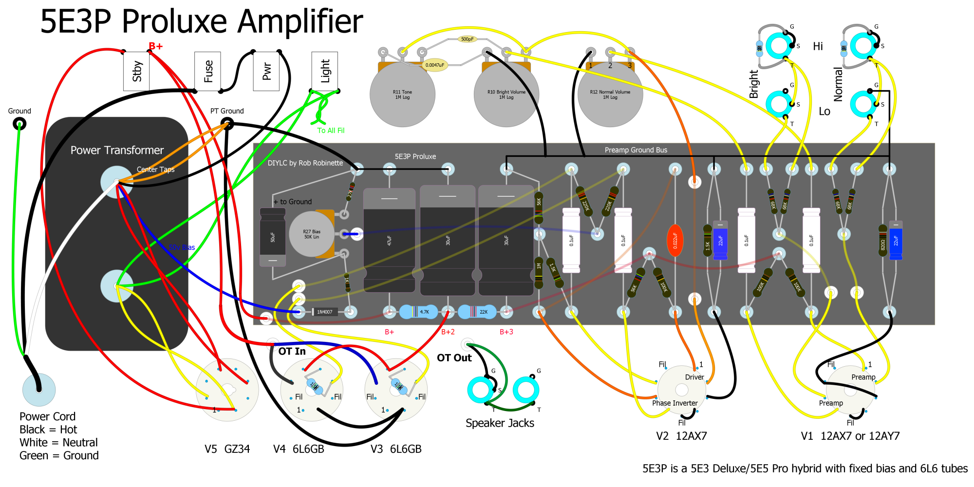 Click on the image to see the full size layout. The Proluxe features 6L6 tubes and fixed bias.