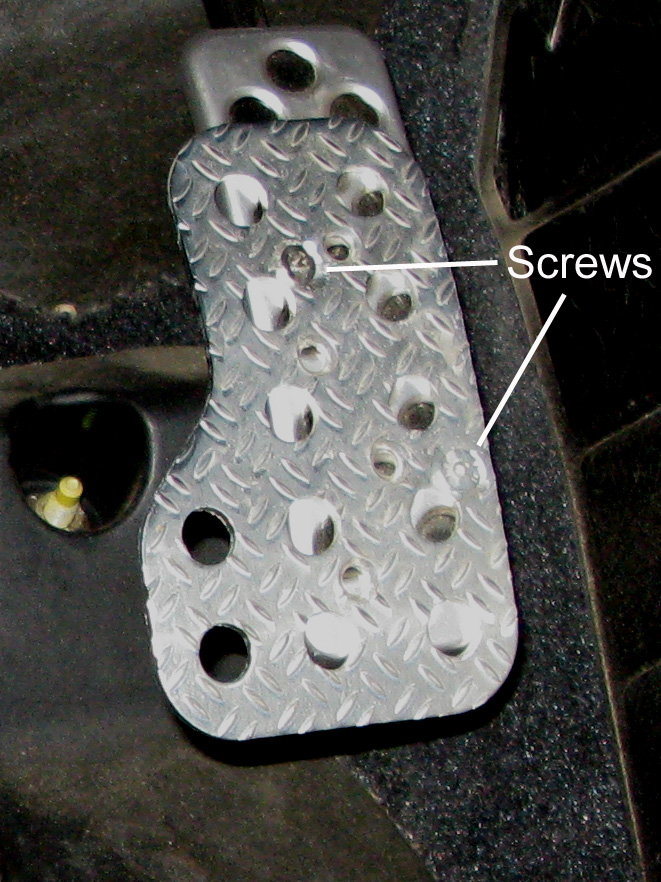 The Sparco pedal is made of aluminum and easy to bend. I bent it slightly to match the curvature of the stock pedal. I drilled two holes in the Sparco and stock pedals to mount the pedal cover. I didn't use the predrilled holes on the Sparco pedal cover. I placed my bolt holes on each side of the stock pedal's "back ridge." The upper hole required a longer bolt than the one supplied by Sparco. Ace hardware had a slightly longer metric countersunk bolt that worked perfectly (same size as the Sparco bolt but longer). The lower bolt was supplied with the Sparco pedal kit. Before committing to your mounting position move the accelerator all the way to the floor to make sure there's no interference from the pedal cover. Be sure and countersink the holes in the Sparco pedal so the screw heads will sit flush with the pedal and not stick up to catch your shoe.
