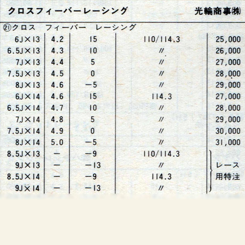While some Colin products came from Speed Star Company, the Cross Fever line came from Enkei. The three-piece Cross Fever Racing model used shells shared with the Enkei Apache I, and a center cast by Yamaco Industries. On front and back, the centre shows beautiful casting details which help make it one of the lightest non-race specific wheels with origins in the seventies. Only 4.6kg for 14 6J size.