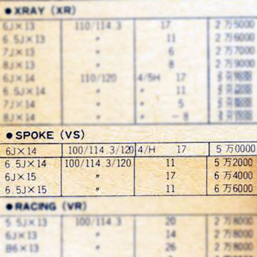 Two different style centre caps were available, with a wider centre disk being offered post 1985. Dubbed, “for high-class cars” the Volk Spoke also carried a very high class price tag. In 1983 the MRSP was 66000円 making it twice as expensive as other Volk wheels at the time.