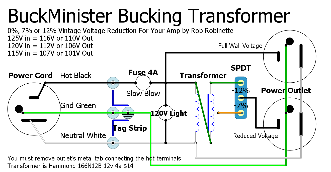 Back in the 1950's and 60's the US wall voltage was around 110 volts. Today it can be higher than 125volts. An amplifier's power transformer is stepping up the wall voltage by a factor of three or more so those extra 15 volts at the wall can be 45 volts of extra B+ which can affect the amp's tone (typically makes it louder and punchier). I built a simple and inexpensive bucking transformer to reduce wall voltage to a more vintage level.
