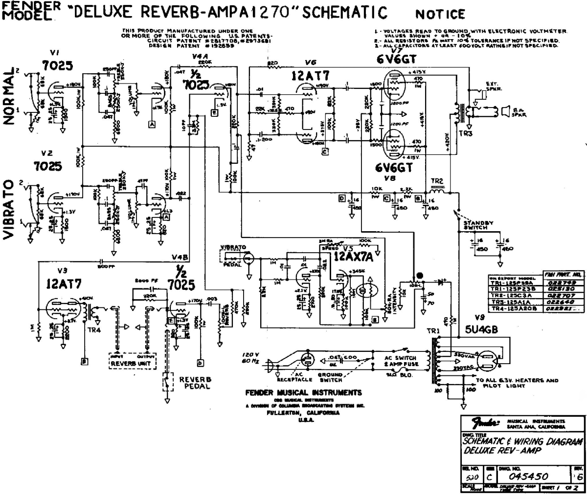 Both volume pots, both phase inverter caps and the V1 preamp are different from a standard 5E3 Deluxe.