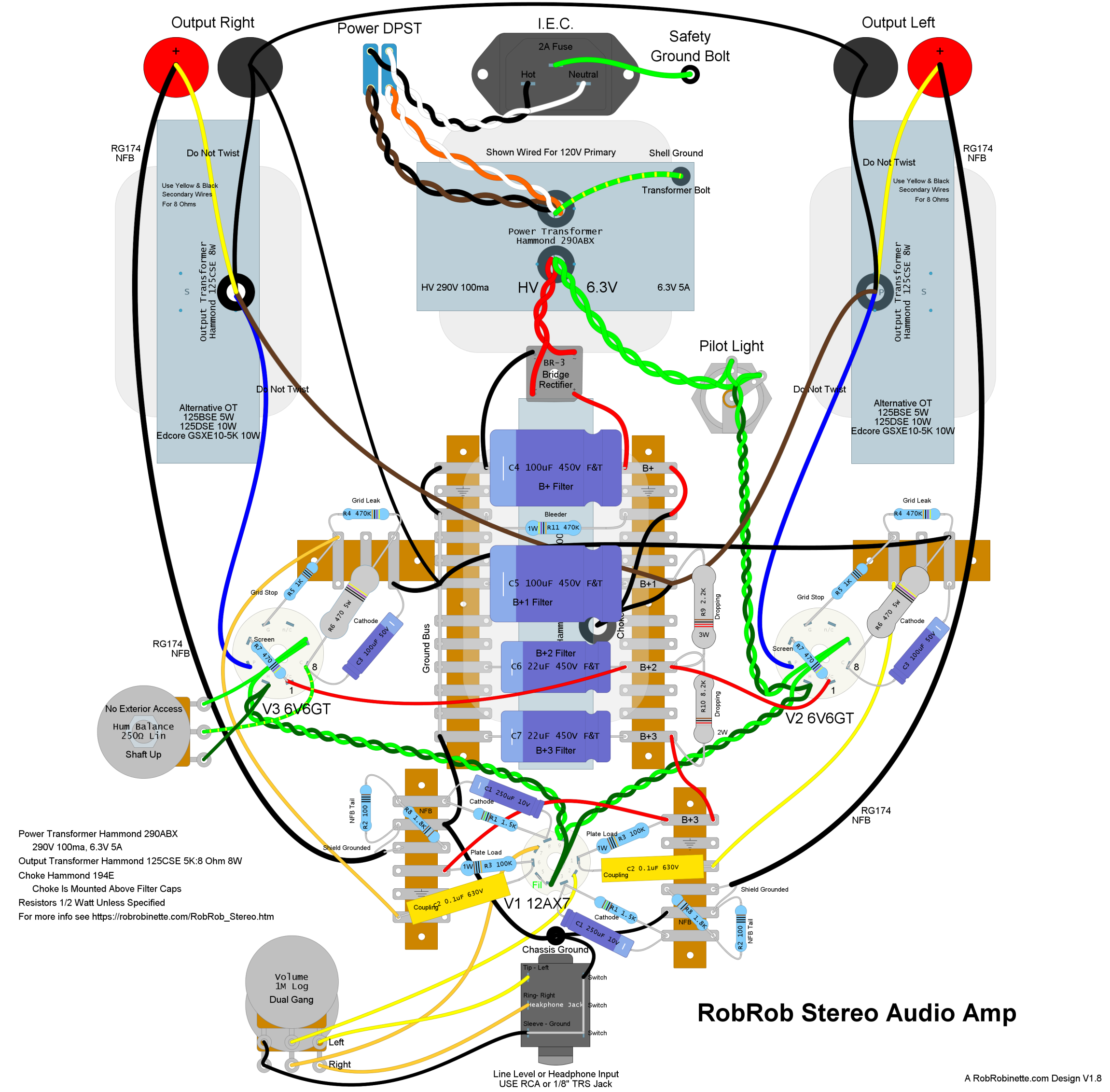 transformers and an added choke to minimize hum and power line noise. I also added a