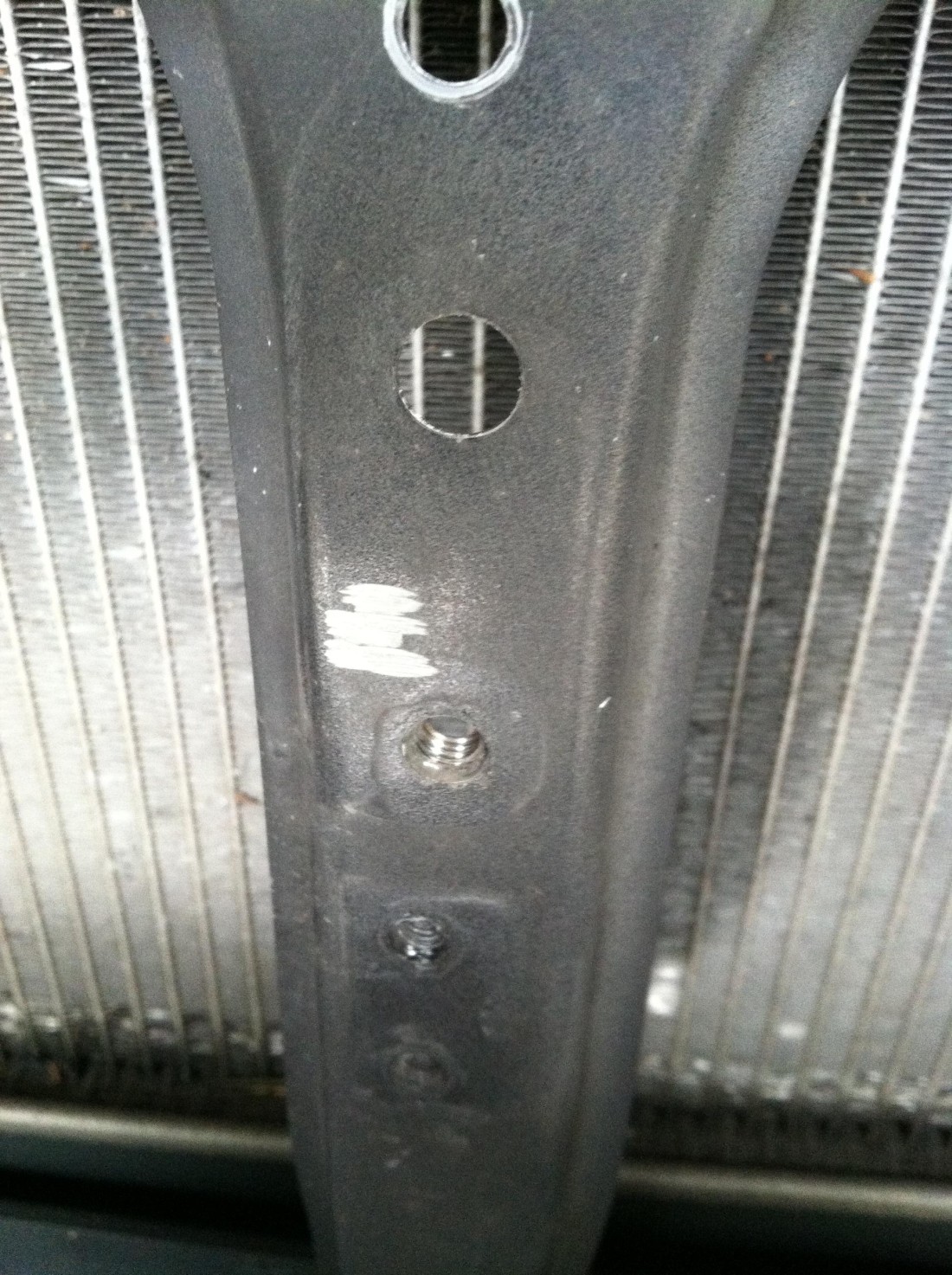 Drilling Hole for Lower Line Through Passenger Side Radiator Shroud
