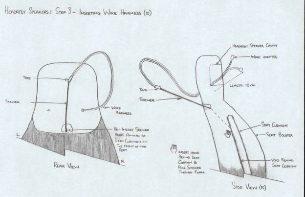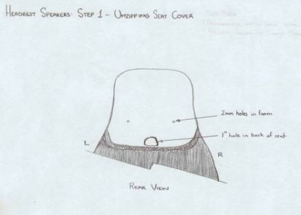 I repeated the process for the left speaker as well, being careful not to pierce the cloth or vinyl back of the seat.