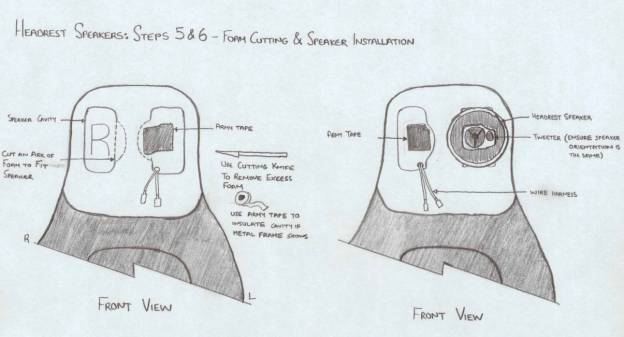 I hope that the information and diagrams I have provided will help other fellow Miata owners to install their own headrest speakers. Needless to say, I cannot accept responsibility for anyone cutting his hands or injuring himself, ruining his/her seats, stereo or entire car or inflicting any other damage to himself or any other person/property alive or dead.