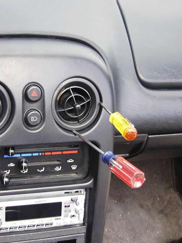 between the vents and the dash pad. I then slowly levered the screwdrivers