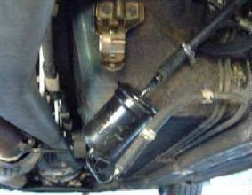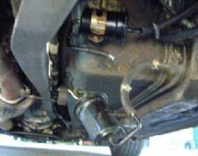 Crawling under the passenger side rear bumper, locate the fuel filter cover. The cover is held in place by 4 or 5 plastic type screw clamps. Frequently they become stripped, so use the knife edge to pry them out slightly, and use cross tip screwdriver to remove. If you find a few broken ones, you should be able to go to your local auto parts store for suitable replacements. Once cover is removed, your lines will probably look a bit different from mine, since I routed my fuel lines to other side of PPF for a Pierberg secondary fuel pump.
