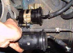 The replacement filter came with one cap missing. Not an issue, unless you're wishing to follow remaining instructions. I made a cap with a short hunk of line and fat screw. During the install, we will be switching one line at a time and replacing each cap to the old filter. The is no need to drain the lines, contaminated fuel is trapped inside the old filter, and with a small amount of dexterity, we will only lose a few drops of fuel. But, this will not work unless the fuel system is properly depressurized.