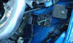 With engine at idle, disconnect the clunky yellow plug under the dash near the steering column. This is the Circuit Opening Relay (1.6), or the Fuel Pump Relay (1.8). Slightly different function, but the end result is the same. It shuts off power to the fuel pump, so in a few moments the engine will stall. When that happens, replace the plug and switch ignition key to OFF. Fuel to the filter is now nearly depressurized. Lines are still filled with fuel and can dribble out by gravity. Still not 100 % depressurized, since will still retain a tiny amount of pressure. If you wrap a rag around the filter line when twisting the first fuel line loose, the tiny spurt of fuel will be absorbed by the rag.
